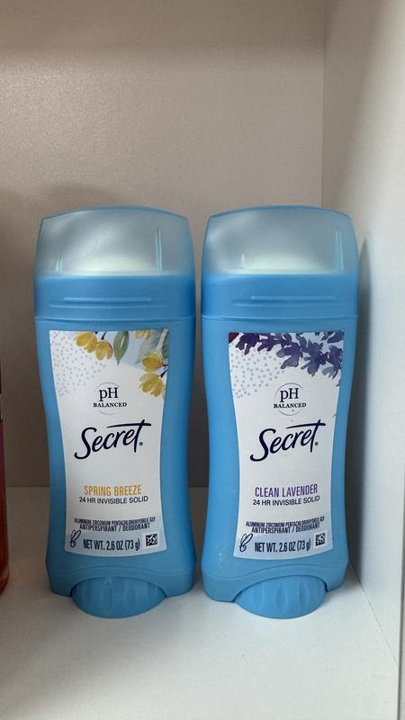 Залишайтеся разом із Secret і завжди будьте впевнені у своєму захисті від запаху поту та плям! Кремовий дезодорант-антиперспірант Secret PH Balanced Clean Lavender Invisible Solid Antiperspirant має вдосконалену класичну формулу, яка постійно змінюється завдяки інноваційним розробкам фахівців компанії. Продукт швидко підлаштовується під вашу природну хімію тіла та усуває піт та запах ще до їхньої появи. Дезодорант легко та рівномірно наноситься, швидко висихає і не залишає плям на одязі. Ви можете бути впевнені у своїй свіжості протягом 24 годин! Засіб має приємний та легкий аромат лаванди, який чудово дезодорує та дарує відчуття чистоти та свіжості на весь день. feelbeauty