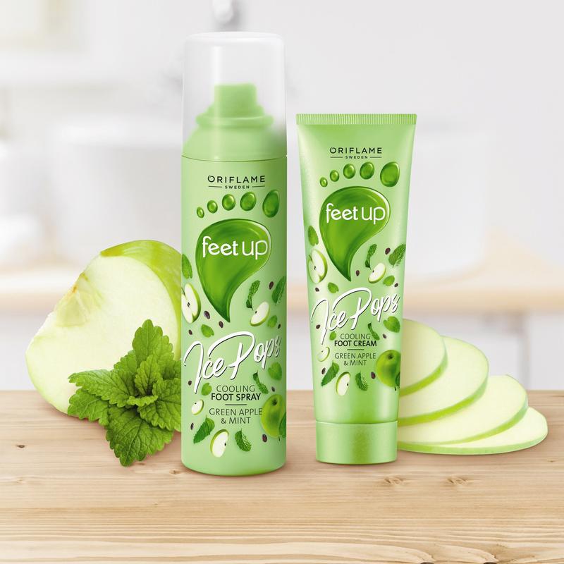 Освежающий набор для ног «Зеленое яблоко и мята» (спрей-дезодорант 150 мл,крем для ног ) Спрей-дезодорант с бодрящими экстрактами зелёного яблока и мяты Подари отдых и свежесть уставшим ножкам. Спрей-дезодорант с бодрящими экстрактами зелёного яблока и мяты мгновенно охлаждает и тонизирует кожу. ● Защищает от неприятного запаха на весь день; ● Быстро сохнет; ● Оставляет на коже приятный аромат; ● Подходит для распыления внутри обуви. 1 способ: нанеси на чистую сухую кожу стоп. 2 способ: распыли внутрь обуви для дополнительной свежести. Аппетитные и освежающие, как фруктовый лед, средства Ice Pops с тремя экзотическими ароматами и натуральными экстрактами так и манят укрыться от летней жары и ощутить приятный холодок на коже. Охлаждающий крем для ног «Зеленое яблоко и мята» 75 мл Сделай шаг навстречу красивым и ухоженным пяточкам. Крем для ног с экстрактами зелёного яблока и мяты охлаждает, увлажняет и тонизирует кожу. ● Восстанавливает сухую и огрубевшую кожу, разглаживая и смягчая её; ● Быстро впитывается; ● Оставляет на коже освежающий аромат. 1. Распыли на чистую сухую кожу стоп спрей-дезодорант «Зелёное яблоко и мята» (35851) для дополнительной свежести. 2. Нанеси крем. 3. Аппетитные и освежающие, как фруктовый лед, средства Ice Pops с тремя экзотическими ароматами и натуральными экстрактами так и манят укрыться от летней жары и ощутить приятный холодок на коже.