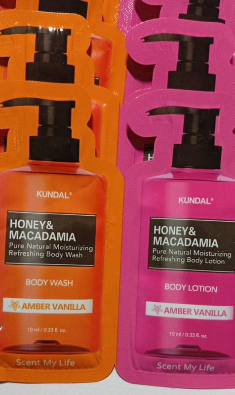 Набор гель для душа и лосьон Kundal Honey & Macadamia Amber Vanilla body wash and body lotion.
