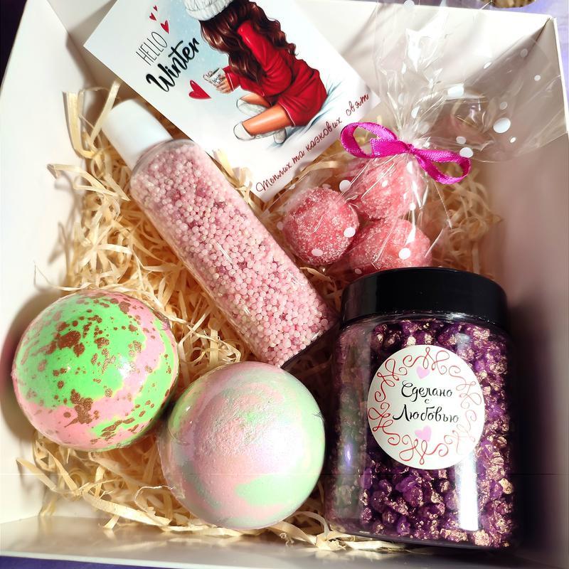 Тип засобу: Набори Кілька примірників у наявності 🎁СПА набір,в якому зібрані всі самі необхідні кошти для розслаблення у ванній🛀 і одночасно доглядом за Вашою шкірою. Найприємніше,що в кожному засобі є кілька видів корисних для шкіри масел🥑🥜,і при цьому вода у ванні не буде жирна😉,а шкіра дуже ніжна,зволожена і нагодована👍🏼 В наборі: 💮Перли для ванни 💮Бомбочки 2 шт 💮Сіль перламутрова 💮Скраб кульки