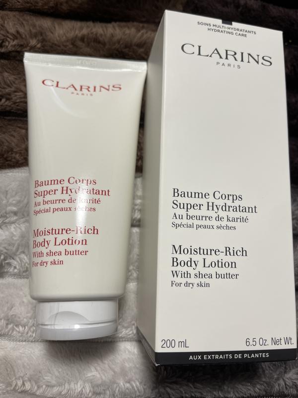 Власницям сухої і дуже сухої шкіри знайомі проблеми лущення, відчуття стягнутості і дискомфорту. Забезпечити шкірі повноцінне зволоження допоможе бальзам Clarins Moisture-Rich Body Lotion. Створений на основі рослинних екстрактів і натуральних олій бальзам не тільки насичує шкіру живильною вологою, але і дозволяє надовго зберегти відчуття комфорту завдяки відновленню гідроліпідної плівки, яка контролює водний баланс тканин. Зволожувальний лосьйон Clarins Moisture-Rich Body має досить щільну текстуру, проте легко розподіляється на тілі і швидко вбирається, не залишаючи липкості або жирності. До складу формули бальзаму входить персикове молочко, масло ши і оливковий пергідросквален, які повноцінно зволожують і заспокоюють шкіру. Наявність у складі лосьйону фруктових кислот з кератолитическими властивостями сприяють розгладженню і оновленню шкіри, віск флердоранжу і масло «гавайського дерева» нормалізують її водно-жировий баланс.