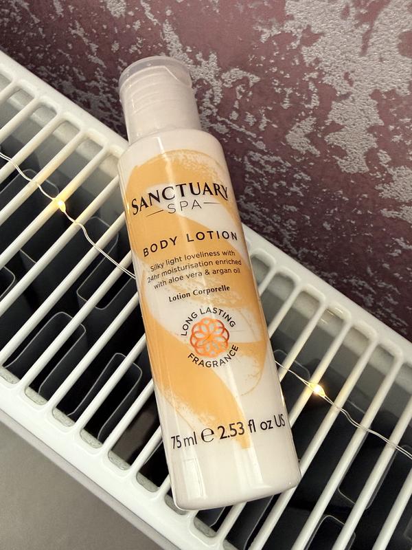 Sanctuary spa 90 грн Лосьйон для тіла. Шовковиста легка ніжність з 24 годинним зволоженням, збагачений алое вера та аргановою олією Обʼєм: 75ml