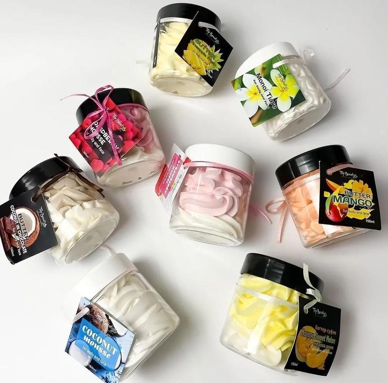 Баттер -СуФле на основе масла ши ( для сухой и обезвоженной кожи ) ⠀ Дыня, клубника, малина, шоколад, кокос, манго, ананас, монои-банан. ⠀ В составе только масла и полезные ингредиенты. ⠀ 💁🏼♀️ незаменимо для обладательниц сухой кожи. ⠀ 👶🏻 подходит как для кожи младенца, так и для увядающей, зрелой кожи. ⠀ 🩹 прекрасно справляется с царапинами, мелкими порезами и покраснениями на коже. ⠀ ☀️ обладает SPF фактором от 3 до 6, т. е. вполне может заменить солнцезащитное средство. ⠀ 🌬 отлично борется с шелушениями, обветренной и огрубевшей кожей. ⠀ 🧏🏼♀️ борется с мелкими морщинками. ⠀ 💧стимулирует выработку коллагена и эластина. ⠀ 🧴 может заменить такие средства как: бальзам для губ, крем для лица, маску для волос, крем для тела и рук, средство для смягчения кутикулы и мн. др. ⠀ 🤰🏼не только является отличной профилактикой от растяжек, но и борется с ними на начальной стадии их появления. ⠀ 💆🏻 отлично подходит для массажа (лечебный, согревающий, антицеллюлитный) ⠀ Цена: 140грн #баттердлятела#кремдлятела#натуральнаякосметика#украина#бальзамдлягуб#маскадляволос#кремдлярук#кремдлятела#кремдлялицаукраина