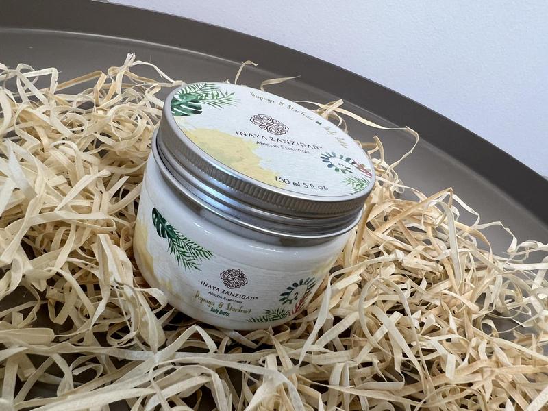 Баттер для тіла — це універсальний засіб, виготовлений на основі натуральних олій, компоненти папайї, карамболю, яке допомагає боротися з сухістю і живить шкіру. Англійською butter означає "вершкове масло". У баттера тверда консистенція. При зіткненні з пальцями засіб починає танути і його легко можна нанести на тіло. В наявності 3 шт. Засіб привезеное із Занзібару