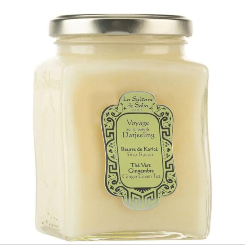 Баттер для лица, тела и волос La Sultane De Saba Shea Butter Ginger Green Tea Масло ши (карите) обладает высокими питательными и увлажняющими свойствами, оно великолепно смягчает грубые и шероховатые участки кожи, придает дерме бархатистость, гладкость и естественное сияние. Масло ши много антиоксидантных и витаминами, оно повышает иммунитет эпидермиса, поддерживает защитный барьер кожного покрова, омолаживает и выравнивает микрорельеф. Карите так же успокаивает и заживляет мелкие ранки, снимает зуд, стаянтость и воспаление кожи, питает волосяные фолликулы, стимулирует рост волос, делает жесткие, сухие и истощенные волосы более мягкими и шелковистыми. La Sultane De Saba Shea Butter Ginger Green Tea содержит экстракты зеленого чая и имбиря, эти компоненты придают продукту легкий зеленый аромат, придают бодрящий, повышают настроение, действуя как ароматерапия, улучшают работу мозга и настраивают на производительный порядок.