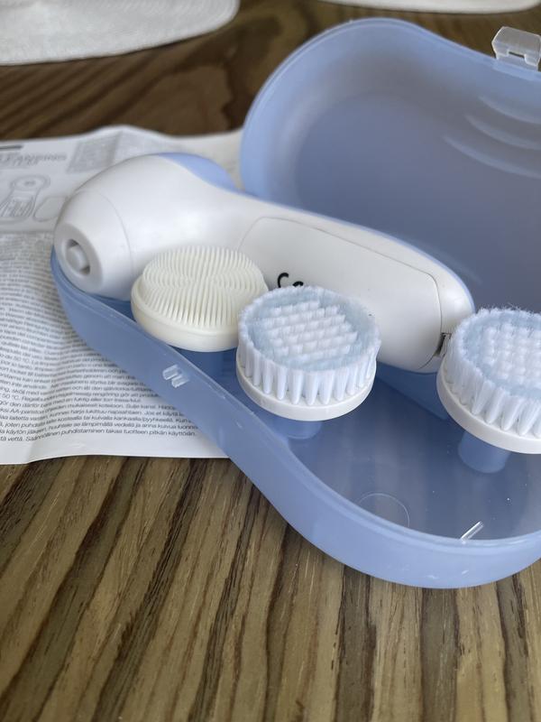 Набор для очищения лица , умывания , пилинга . В комплекте 1 мягкая прорезиненная насадка и 2 щеточки . Не пользовалась . Подарили, лежит без дела .