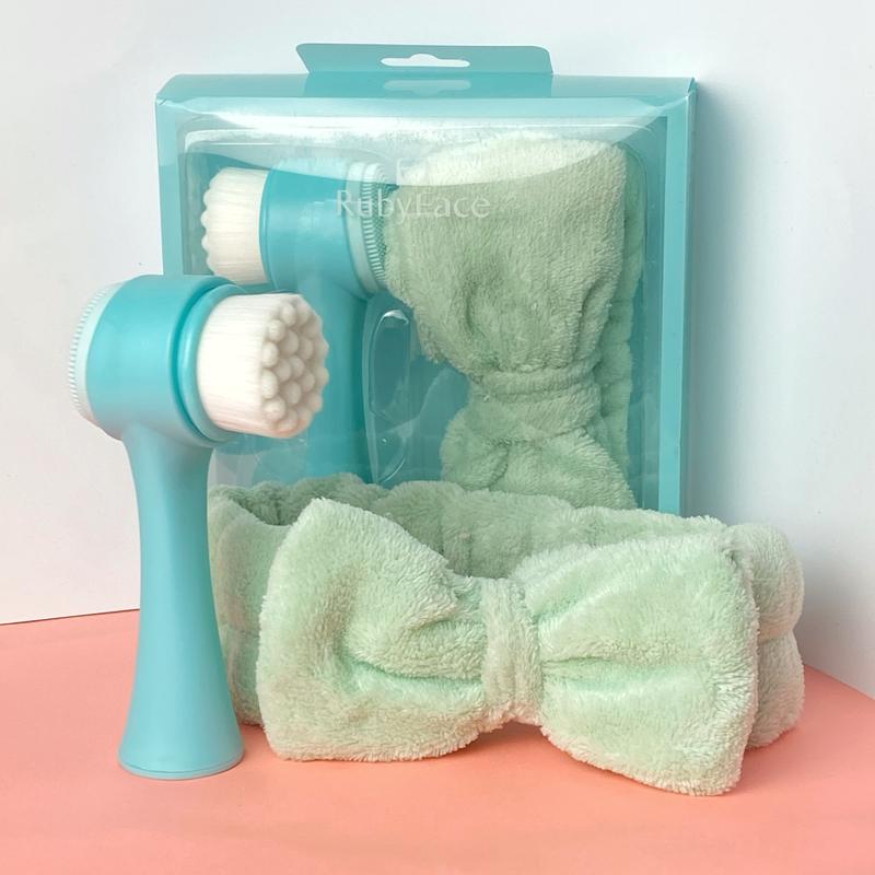 Набор - повязка и двухсторонняя щетка для лица ruby face, зелёный к.027