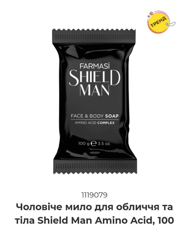 Чоловіче мило для обличчя та тіла shield man amino acid, 100 г