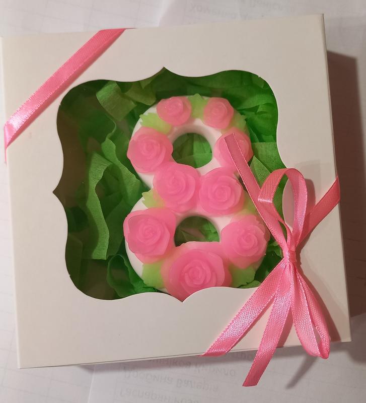 Ароматне мило ручної роботи на 8 березня. велика вісімка з квітами в подарунковій упаковці...