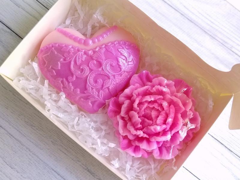 Сувенирное мыло, набор: сердечко в виде дамы и пион