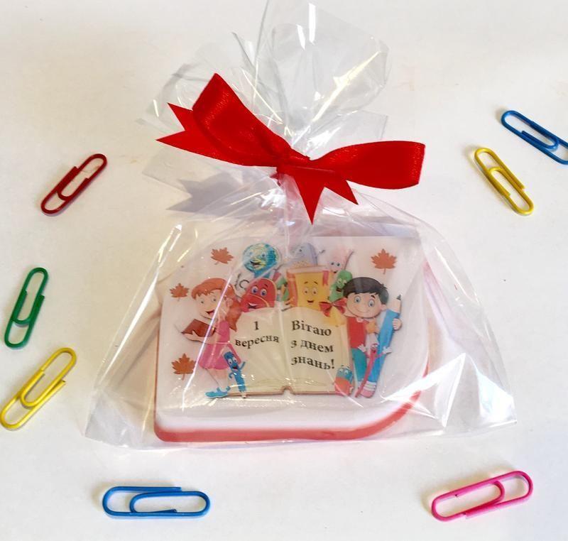 Дорогие мамочки! Скоро 1-е сентября - светлый праздник "День знаний Вы уже подготовились по полной программе: купили форму-портфель-канцтовары.. А о подарках учителям (воспитателям) не забыли? Кроме привычных астрочек-георгин-розочек можно запомниться и произвести хорошее впечатление у учительницы, подарив ей праздничное Мылко с тематическим поздравлением. В коробочке с ленточкой или в пакетике с ленточкой. Уверяю Вас- Вы будете оригинальны в своём подарке! И про чадо своё не забудьте! Ему (ей) тоже будет приятно. - Мылко изготовлено только из натуральных и сертифицированных ингредиентов, ароматизировано вишней (или другой аромат на выбор). Картинку можно выбрать любую. Цена мылка при заказе от 5 шт - 60 грн. (упаковка в пакетик с ленточкой бесплатно). Коробочка с ленточкой отдельно 35 грн. Спешите сделать заказ: картинок осталось немного! Дополнительные характеристики: Повод: Подарок ребенку Товар под заказ