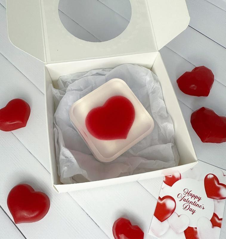 Мило-валентинка . Виготовлене з якісної англійської основи. Основа з якісної рослиної речовини. Не містить Лаурилсульфат натрія (SLS Free) та парабенів! ⭐️Не сушить та не подразнює шкіру. ⭐️Аромат та колір на будь-який смак. Вага 60 грам Товар под заказ