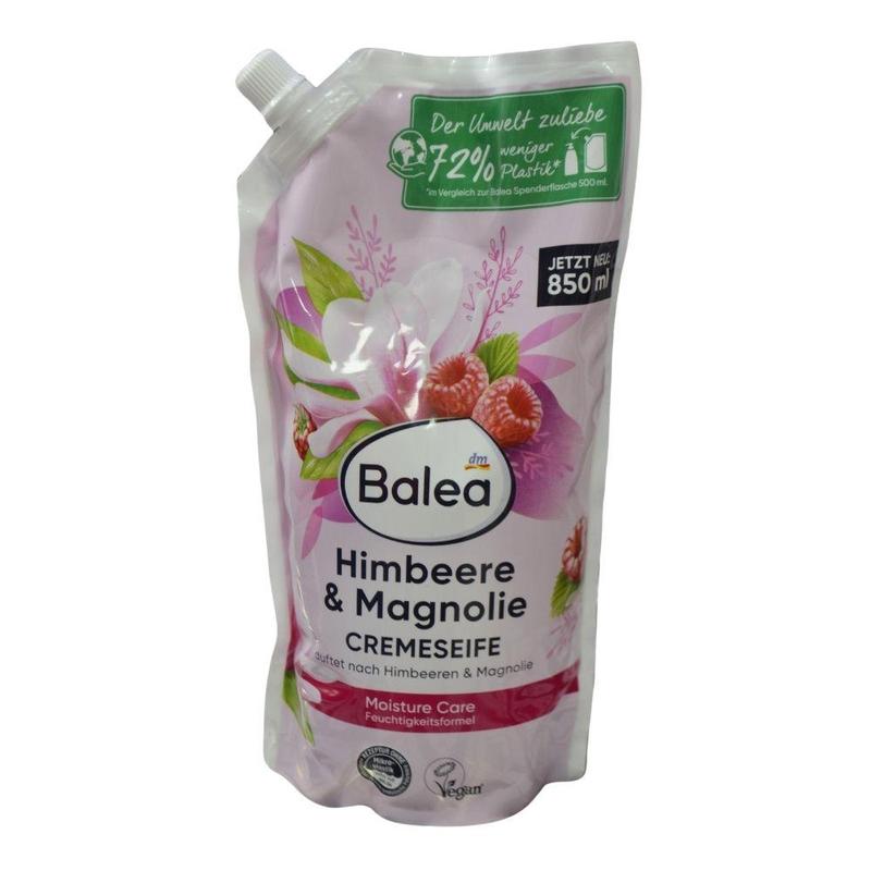 Рідкі мила Balea Рідке мило Balea об'ємом 850 мл з ароматом магнолії та малини — це розкішний засіб для догляду за руками, який дарує не тільки чистоту, але й справжнє задоволення під час використання. Його легка формула ніжно очищує шкіру, зберігаючи природний баланс вологи, завдяки чому руки залишаються м’якими і зволоженими навіть після частого миття. Аромат магнолії та малини створює приємну атмосферу, наповнюючи простір свіжістю і легкістю. Кожен раз, користуючись цим милом, можна насолоджуватися приємним і тривалим ароматом, що піднімає настрій. Ваша щоденна рутина перетвориться на справжнє задоволення завдяки поєднанню природних ароматів. Упаковка у форматі дойпак забезпечує зручність у використанні і економічність, дозволяючи витрачати лише необхідну кількість продукту. Це мило стане чудовим доповненням до вашої ванної кімнати або кухні, роблячи миття рук приємним і ефективним. Balea — це якість і задоволення в кожному митті, що перетворює звичайний процес у маленький ритуал краси.