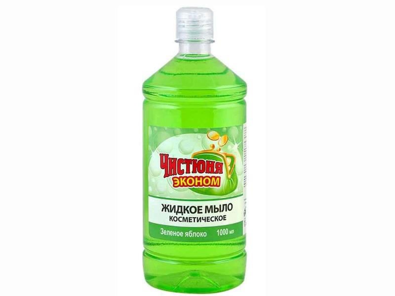 Мыло Чистюня Зеленое Яблоко Мягкий сбалансированный состав жидкого мыла обеспечивает бережный уход за кожей рук и тела, смягчает и увлажняет ее, оставляя приятный аромат свежести.