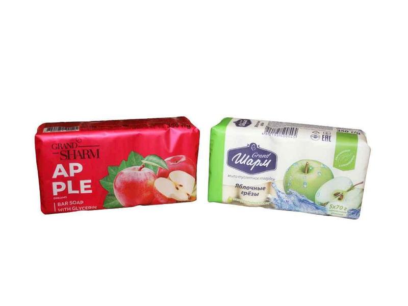 Опис Класичне туалетне мило білого кольору, має яскравий ароматом зеленого яблука. Стійкість аромату забезпечується використанням високоякісних ароматів Європейського виробництва, а завдяки унікальній технології, при виробництві мила в його складі зберігається природний гліцерин, сприятливо впливає на зволоження шкіри рук. Вихідними компонентами при виробництві мила «GrandШарм» виступає сировина виключно натурального походження, чому мило не тільки відмінно справляється з забрудненнями, але при цьому ще й не містить алергенів і інших потенційно- небезпечних речовин, що підтверджено сертифікатами якості та лабораторними дослідженнями мила «GrandШарм». Мило упаковується в економічну групову упаковку - 5 шт. по 70 грам (екопак), що дозволяє споживачеві не тільки економити кошти при покупці, але ще й оптимально планувати свій бюджет. Упаковка мила «GrandШарм» 5х70 грам має приємний матовий відтінок. Вибір на користь цього матеріалу був зроблений не тільки з естетичних міркувань, але і в силу можливості цього матеріалу краще розсіювати прямі сонячні промені, тим самим знижуючи вплив сонячної активності на саме мило і стійкість його аромату. Завдяки використовуваній сировині, технології виробництва, а так само якості упаковки - термін придатності мила становить не менше 3 років. Номінальна маса - 5х70 (350) грам. Склад: натрієві солі жирних кислот тропічних рослинних масел, вода демінералізована, парфумерна композиція, гліцерин, екстракти рослин масляні, трилон Б, EHDP, кислота лимонна, антиоксидант, діоксид титану Фасовка: 350 г, 5 шт по 70 г