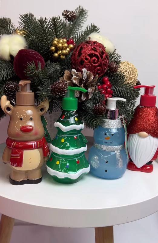 Подаруйте вашим рукам святковий догляд та настрій з колекцією новорічного мила для рук у святкових дизайнах! Ці милі дозатори з рідким милом представлені у чотирьох різних святкових образах: ялинка, гном, сніговик та оленя. Кожен дозатор наповнений ароматним милом, яке не лише очищає, а й зволожує шкіру, залишаючи приємний аромат. - Ялинка: Зелений дозатор у формі ялинки з білими сніговими гірляндами та різнокольоровими кульками -- справжня прикраса для вашої ванної кімнати! - Гном: Червоний гном з блискучою шапкою та довгою білою бородою створить затишок і казковий настрій. - Сніговик: Синій сніговик з блискучими елементами на шапці та шарфі -- ніжний акцент у зимовому стилі. - Олень: Кававо-коричневий олень з червоним носом та червоним шарфом -- ідеальний вибір для створення теплоти та комфорту. Цей набір стане чудовим вибором для створення святкової атмосфери вдома, в офісі або як оригінальний подарунок для близьких. Подаруйте трішки магії з цими стильними та зручними дозаторами для мила, що додадуть затишку та радості у повсякденний догляд за руками. Особливості продукту: - Тип: Рідке мило для рук - Кількість варіантів дизайну: 4 (ялинка, гном, сніговик, олень) - Ємність: 300 мл - Ідеально для дому