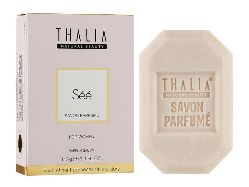 Позвольте всем вашим чувствам раскрыться на полную вместе с парфюмированным мылом от бренда Thalia под названием See. После первого же применения, ваша кожа станет на столько бархатной, что объятий в вашей жизни точно станет намного больше. Кроме того, мало подарит восхитительный аромат, который надолго задерживается на вашем теле. Его пирамида собрала в себе чувственный шипр, томные аккорды спелой смородины, а также ноты теплого мускуса. Продукт имеет натуральный состав и бережно ухаживает за вашей кожей. Особенности парфюмированного мыла See от Thalia: - дарит телу яркий и насыщенный аромат; - деликатно очищает тело от загрязнений и себума; - устраняет неприятные запахи; - минимизирует количество вредоносных бактерий; - подойдет для всех типов кожи; - дарит коже мягкость шелка; - защищает от сухости и шелушений; - нейтрализует дискомфортное ощущение стянутости.