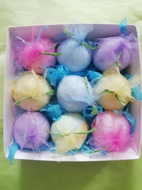 Бомбочки для ванны изготовлены на основе морской соли с разными отдушками и сушеными травами (цветами календулы, лаванды, лепестками розы). Хорошая пенится, улучшают кровообращение, микроциркуляцию крови, дезодорируют, снимают усталость, кожа становится нежной и шелковистрю. Цена - 35грн за 1шт. Детали в приват