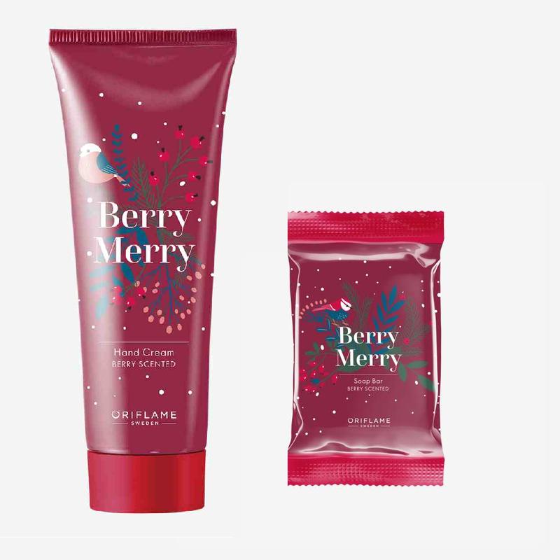 41099 Мило Berry Merry Відчуй дотик свята з чарівним ароматом стиглих ягід! Ніжна формула Красивий святковий дизайн Чудовий аромат стиглих ягід Соковитий коктейль із червоних ягід відкривається малиновим акордом, плавно змінюючись пряністю журавлини, чорної смородини та стиглої морошки. Фінальний акорд - феєрична свіжа суниця, що виблискує, як бенгальські вогні. Об'єм 75 г 41141 Крем для рук Berry Merry Зволожує та живить шкіру Огортає ароматом стиглих ягід Ідеально для подарунка Він робить ручки м'якими та гладкими, огортає чудовим святковим ароматом стиглих ягід. Об'єм 75 мл