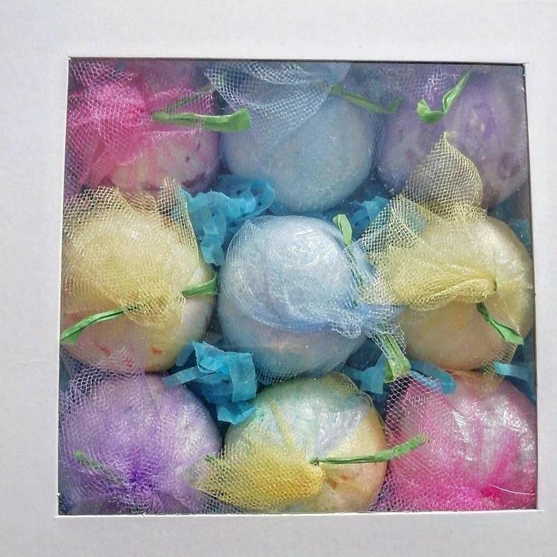 Набір бомбочок для ванни. 🍚Пропоную бомбочки для ванни ручної роботи, виготовлені на основі морської солі з різними ароматами і травами: квітами календули, лаванди, пелюстками троянди. Ці бомбочки - гейзери допоможуть зняти втому, розслабитися після трудового дня. Шкіра стає ніжною та шовковистою, покращується мікроциркуляція крові, відбувається глибоке очищення пор. 🍚Кожна бомбочка індивідуально упакована (пакування-це моя власна ідея), а набір укомплектовано в гарну подарункову коробочку. Комплектація може бути будь-яка. Ціна залежить від комплектації. В даному наборі 9шт. Товар под заказ