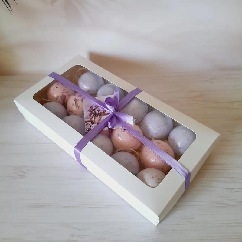 💣Подарочный набор бомбочек для ванны ручной работы в хорошей упаковке. 🍡В наборе 14бомбочек с ароматом розы и лаванды, с добавлением сушеных цветов лаванды и лепестков розы. Также в набор входит свеча из соевого воска в форме сердца цветка с невероятным ароматом манго. 🎀Цена набора - 630грн. 💙Детали в приват.