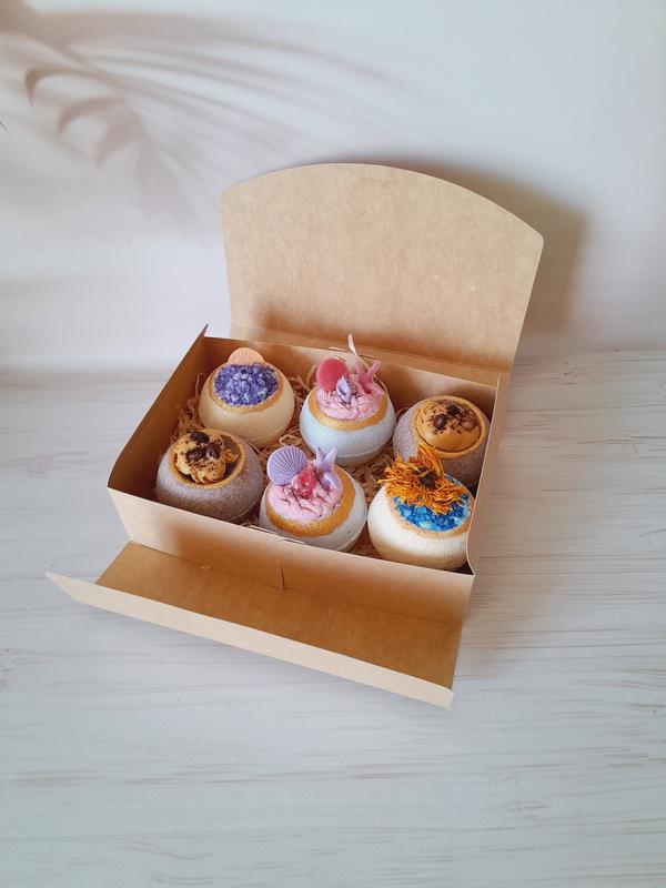 💣Подарочный набор бомбочек-чаш для ванны с разным наполнением, украшены мыльными фигурками. 💣В наборе шесть бомбочек-чаш: -бомбочки, наполненные морской солью 2шт -бомбочки, наполненные нежным пралине 2шт -бомбочки, наполненные нежным кремом 2шт 🎀Цена набора - 490грн. 💙Детали в приват.