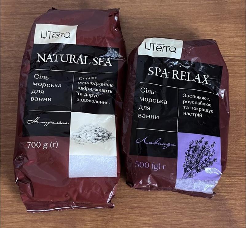 Сіль для ванни натуральна і лаванда, нова, зачинена. Обʼєм 500 г та 700 г.
