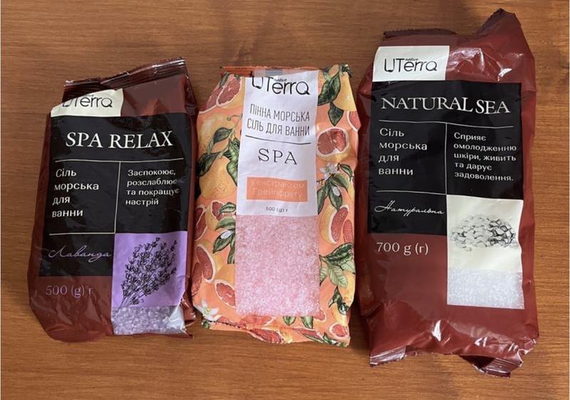 Сіль для ванни натуральна і лаванда та з екстрактом грейпфрута, нова, зачинена. Обʼєм 500 г та 700 г.