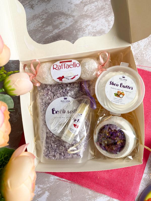 Подарунковий бокс - це ідеальний подарунок доньці, сестрі, подружці чи коханій! Яскравий незвичайний бокс, якого будь-яка дівчинка буде в захваті. Адже, в ньому таке милі і потрібне🛁 Бокс містить: -сяючу сіль для ванни✨ -скраб для тіла Рафаелло🍥 -бомбочку-чашу з сіллю💣 -зволожуючий бальзам для губ👄 -баттер для тіла на основі олії ши🧈 Наповнення можна змінювати за бажанням🙌