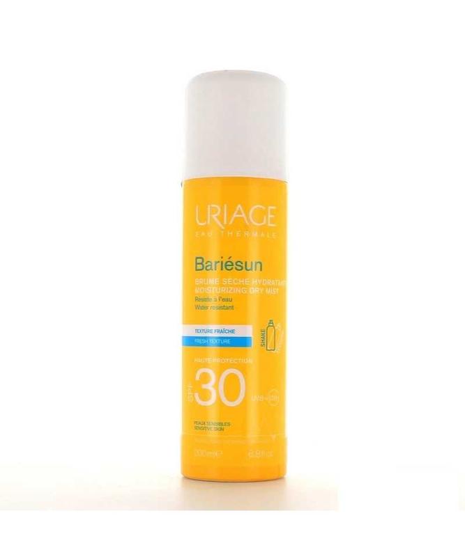 Uriage Bariésun Dry Mist SPF30 200 мл спрей із високим ступенем захисту, створений спеціально для захисту чутливої шкіри обличчя та тіла. Він поєднує в собі високоефективний фільтруючий комплекс і властивості термальної води Uriage для захисту шкіри та запобігання пошкодженню клітин, спричиненим UVA та UVB променями. Його безперервна дифузійна система дозволяє легко наносити навіть на вологу шкіру та особливо підходить для активного відпочинку на свіжому повітрі для надзвичайно освіжаючого ефекту. Його надлегка та невидима текстура гарантує сухе та нелипке покриття. Його система дифузії дозволяє легко наносити навіть на вологу шкіру. Дерматологічно перевірено. Водостійкий.