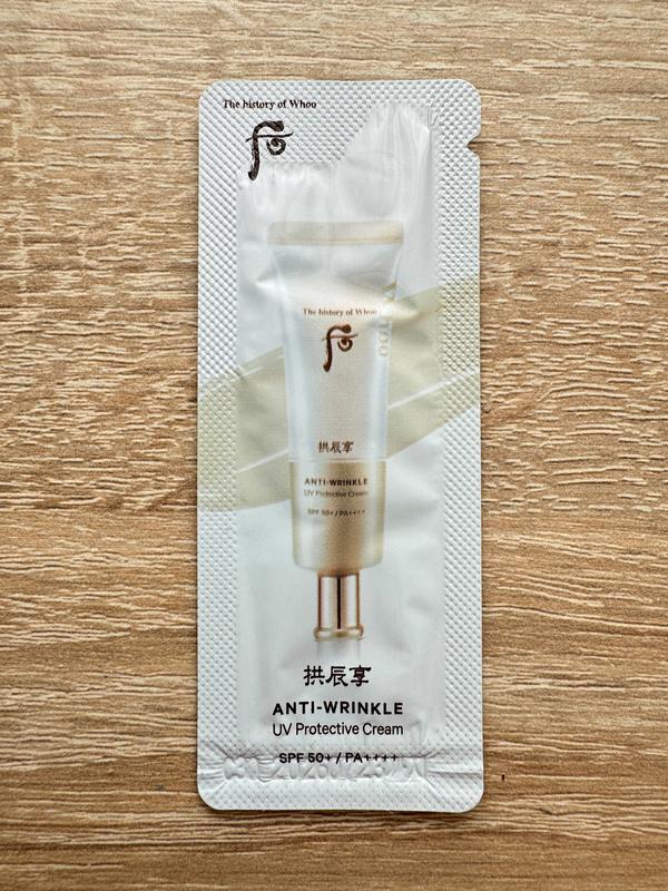 Новый 2023г. солнцезащитный омолаживающий крем The History of Whoo для всех типов кожи. Не липкий, хорошо увлажняющий. Идеальная защита от солнечных лучей + коррекция возрастных изменений (борьба с морщинами). Восстанавливает гидролипидный баланс, питает и увлажняет кожу, разглаживает морщины, восстанавливает упругость, предупреждает обезвоживание кожи, вызванное ультрафиолетовыми лучами. Санскрин устойчив к воде и поту, сохраняет здоровый тон кожи и жизненную силу в течение дня. Экстракт лотоса придает коже шелковистость. Для предотвращения фотостарения кожи и негативных последствий, вызванных воздействием ультрафиолета, рекомендуется использовать в любое время года. Защита от солнца гарантируют органические и химические фильтры в составе крема: Ethylhexyl Methoxycinnamate, Zinc Oxide, Ethylhexyl Salicylate, Diethylamino Hydroxybenzoyl Hexyl Benzoate, Titanium Dioxide, Bis- Ethylphexylox