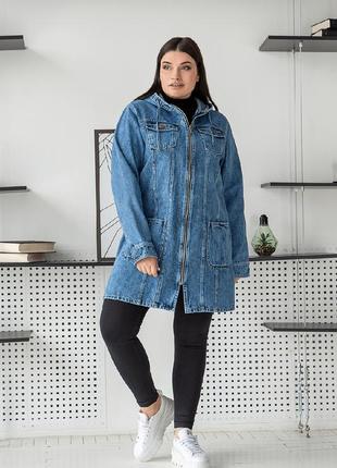 Довгі джинсові куртки з капюшоном