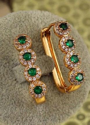 Длинные серьги с зелеными камнями