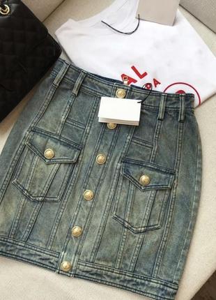 Джинсовые юбки на молнии с накладными карманами