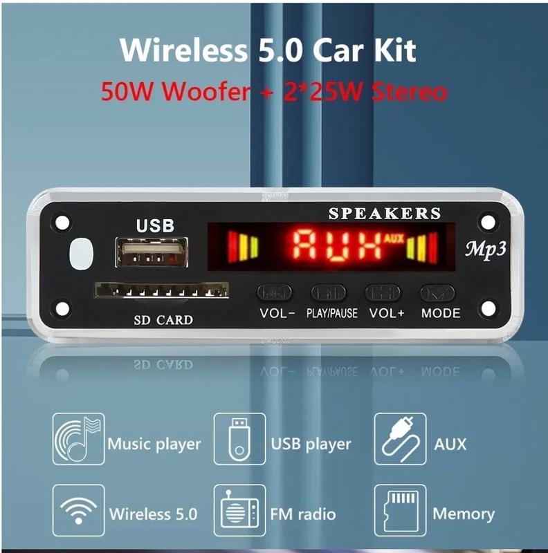 Модуль mp3, fm+bluetooth 5.0+усилитель 2*25w, пульт, декодер плеер