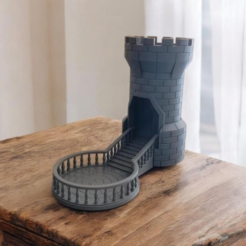 Додайте епічний штрих до своїх сеансів рольових ігор за допомогою цієї неймовірної вежі, що кидає кубики! Розроблена для покращення досвіду в D&D, Pathfinder, Warhammer Fantasy Roleplay, або інших настільних іграх, де панує атмосфера лицарства, магії та пригод, ця вежа дозволяє проводити чесні та візуально видовищні кидки. Її функціональний дизайн забезпечує правильне кидання кубиків, а продумана структура робить її ідеальною для будь-якого ігрового столу. Даний виріб виготовлений за сучасною технологією 3D-друку, що забезпечує високу якість та деталізацію. Зверніть увагу, що відтінок виробу може відрізнятися від зображення на фото через особливості філамента та процесу друку. Ця вежа, виконана у класичному середньовічному стилі, вражає своєю деталізацією. Вона має міцну кам'яну кладку, аркові вікна та зубчастий парапет на вершині. Головною особливістю є грандіозні сходи, що ведуть від виходу з вежі до просторого круглого внутрішнього дворика-балкона, оточеного витонченими балясинами. Кубики, закинуті у верхню частину вежі, прокочуються крізь її внутрішні щаблі та ефектно спускаються сходами, зупиняючись на балконі, готовими відкрити свою долю. Особливості: Середньовічний стиль, натхненний замковими вежами: Ідеально підходить для створення настрою для ваших ігор, переносячи вас у світ лицарів та драконів. Видовищний механізм кидка: Кубики елегантно скочуються сходами на просторий балкон, забезпечуючи чіткий та контрольований результат. Сумісний з усіма типами кубиків: D4, D6, D8, D10, D12 і D20, що робить її універсальним аксесуаром для будь-якої гри. Ідеально підходить для того, щоб кубики не залишали стіл: Завдяки продуманому дизайну з балконом, ваші кубики завжди залишатимуться в межах ігрової зони. Висока деталізація: Від імітації кам'яної кладки до архітектурних елементів сходів та балюстради – кожна деталь продумана до дрібниць. Міцна та стійка конструкція: Виготовлена з якісних матеріалів, вежа забезпечує довговічність та надійність під час активного використання. Зробіть кидки кубиків ще більш захопливими за допомогою цієї унікальної вежі! Вона стане не тільки функціональним інструментом, а й справжньою окрасою вашого ігрового простору.