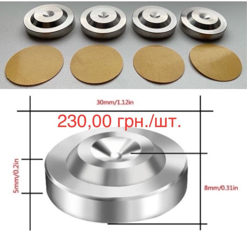 Подставки под акустику (пяточки). Антивибрационные подставки под шипы (для акустических систем). Пятка под шипы акустических систем. Новые! Размер: на картинке. Цена указана за 1 шт. Цена: 100,00 - 400,00 грн./шт. (передплата на карту). Указана цена является минимальной, без учета спецификации Shafa за услуги +15%.