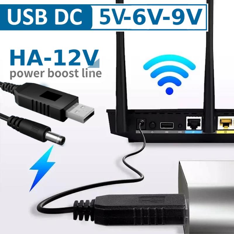 Кабель для роутера dc usb от павербанка 5,5х2,1 мм (1 м) преобразователем напряжения с 5v-...