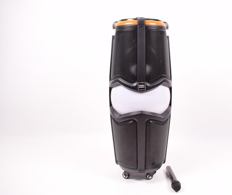 Акустична переносна система Wesyman Q86 Технічні характеристики: ▶Speaker units : 8"bass*2 +1"tweeter *2 ▶110~220V,50/60HZ,impedance 4Ω ▶DC 15V power supply ▶LED light подсветка ▶G.W.:15.65KG, N.W.:13.15KG ▶USB,Bluetooth,TF,FM,AUX ▶Пульт ДК * 1шт ▶Mic гніздо*2 шт. ▶Wireless Microhpone *1 шт Розміри — 89*37*35 см