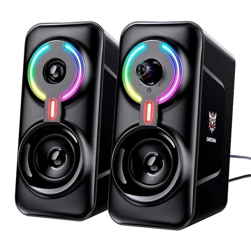 Компьютерная акустика колонка для пк ONIKUMA RGB Backlight L6 |5Wx2, BT, USB, 3.5mm| беспроводная Black Компьютерные колонки ONIKUMA RGB Backlight L6 отлично подходят для прослушивания музыки, для просмотра фильмов, для игр. Имеют превосходное звучание благодаря усовершенствованному звуковому приводу с полнофункциональным 2.0-канальным улучшенным стереоядром. RGB-подсветка с 6 режимами, нажимного типа, переключается простым нажатием на кнопку на одной из колонок. Громкость регулируется с помощью регулятора на динамике. Совместимы с компьютерами самых разных производителей. Колонки можно подключать с помощью USB, AUX кабелей, а также посредством беспроводного подключения Bluetooth V5.0. Высококачественное звуковое исполнение - ## Hi-Fi качество звука - ## Классное RGB-освещение - ## выходная мощность 10 Вт - ## Проводное USB-управление Несколько подключений - ## Bluetooth 5.0 - ## USB-звуковая карта - ## 3,5 мм AUX Эффект RGB-подсветки нажимного типа - ## С режимами 6RGB выберите свою атмосферу, поднимите звук на новый уровень визуально Качественный звук - ## Двойной полнодиапазонный динамик - ## Объемный звук на 360° Регулятор громкости одной ручкой - ## Нажмите и удерживайте кнопку, чтобы включить/выключить, громкость -/+ слева направо Красочный светодиодный свет - ## Улучшите игровую атмосферу Характеристики: - ## Торговая марка : ONIKUMA - ## Модель : L6 - ## Bluetooth : 5.0 - ## Выходная мощность (RMS) : 5 Вт * 2 = 10 Вт - ## Штекер : аудиоразъем 3,5 мм + USB - ## Размер продукта : 7,7x17x10 см