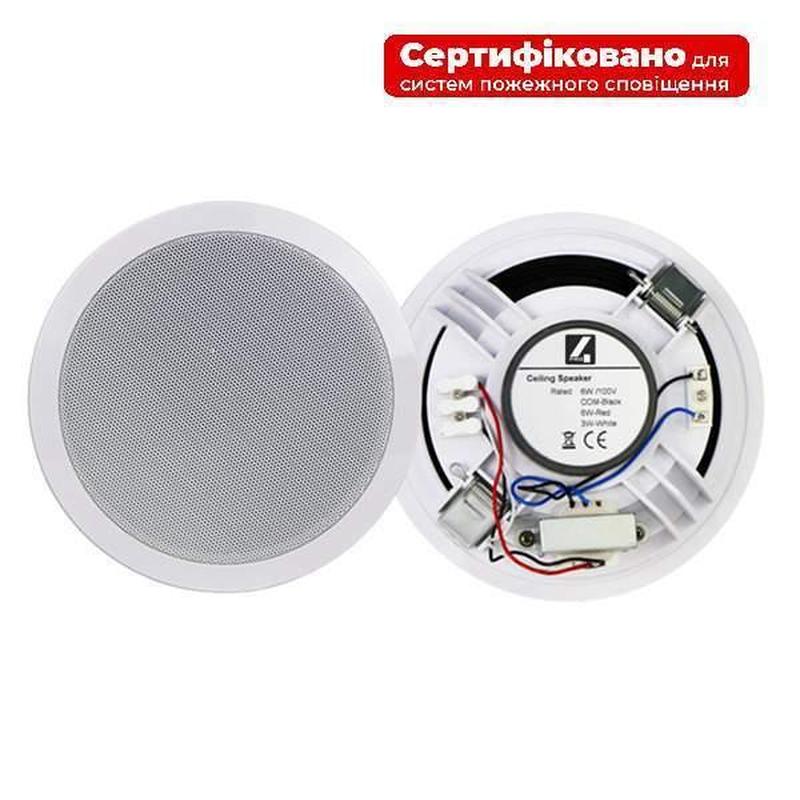 CS 156T Стельова акустична система. Широкосмуговий динамік 5". Потужність: 6/3 Вт Трансформатор: 100В Частотний діапазон: 100-15000ГЦ Чутливість: 93±3 дБ. Тип підключення: клеми. Матеріал корпусу ABS пластик. Розміри: Ø175×60мм. Монтажний отвір Ø150 мм. Вага 0,5 кг Це обладнання отримало сертифікат відповідності ГСЧС України для використання в системах пожежного сповіщення.