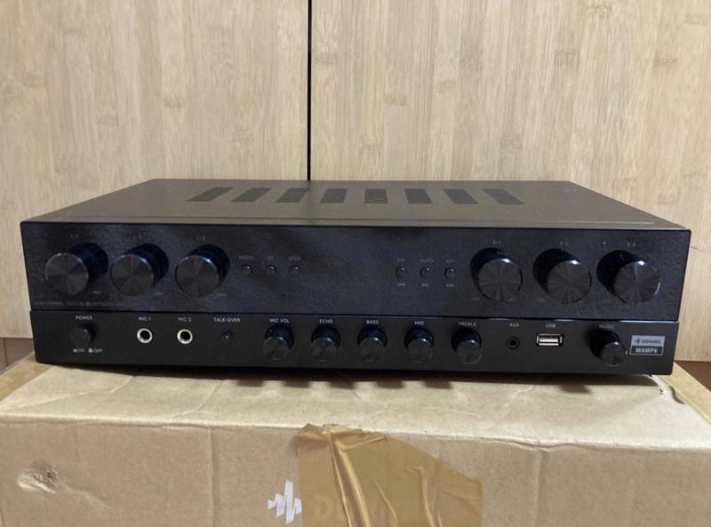 Donner MAMP6 — это 6-канальный стереофонический усилитель мощностью 1000 Вт, предназначенный для домашнего аудио, вечеринок и профессионального использования. Он имеет независимое управление шестью каналами, поддерживает до шести групп колонок (импеданс от 4 до 16 Ом) и оснащен такими функциями, как Bluetooth 5.3, USB, два микрофонных входа и FM-радио. Основные характеристики Donner MAMP6 Мощность: пиковая мощность 1000 Вт Каналы: 6 независимо управляемых каналов Аудиовходы: Bluetooth 5.3, USB (до 64 ГБ), 2 пары RCA, 2 микрофонных входа Колоночные выходы: до 6 групп колонок, каждая с импедансом от 4 до 16 Ом Дополнительные функции: пульт дистанционного управления, настраиваемый эквалайзер, FM-функция