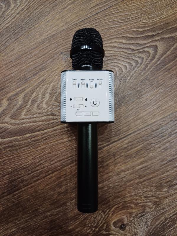 Портативный ручной беспроводной караоке Bluetooth микрофон-колонка вокальный Micgeek Q9 в чехле футляре Черный. Новый, никто им не пользовался. Можно вставлять флешку