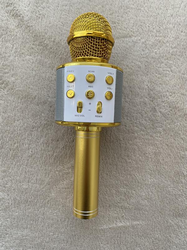 Бездротовий портативний мікрофон WS-858 для караоке Особливості: * Бездротовий Bluetooth мікрофон та колонки, дві в одному. *Головка мікрофона має три обробки для зменшення шумів, які підкреслять ваш гарний голос. * Є режим – ЕХО. * Акумулятор ємністю 1800mAh вистачає до 6 годин безперервного співу. * Підходить для IOS та Android смартфонів, планшетів, Bluetooth і так далі. * Може бути використаний як Bluetooth динаміки. * Є функція запису на карти пам’яті microSD. * Мікрофон змінює голос за одну кнопку (4 режими голосів, від “післявого” до “грубого”). Характеристики: - Версія Bluetooth V4.0 + EDR - Дистанція з’єднання: 10 метрів - Потужність динаміка: 5W (канали 1.0) - Частота: 100Гц-10кГц - Інтерфейс: 3,5 мм (навушники), Micro USB, слот для карт пам’яті TF, USB - Робочий час: 5-8 годин - Режим очікування: 360 годин - Тип акумулятора: Літій-іонний акумулятор 18650 3,7 В, 1800 мАг - Матеріал: Алюміній, ABS пластик - Розмір: 230 х 75 х 75 мм (49×49 мм) - Вага: 391 грам