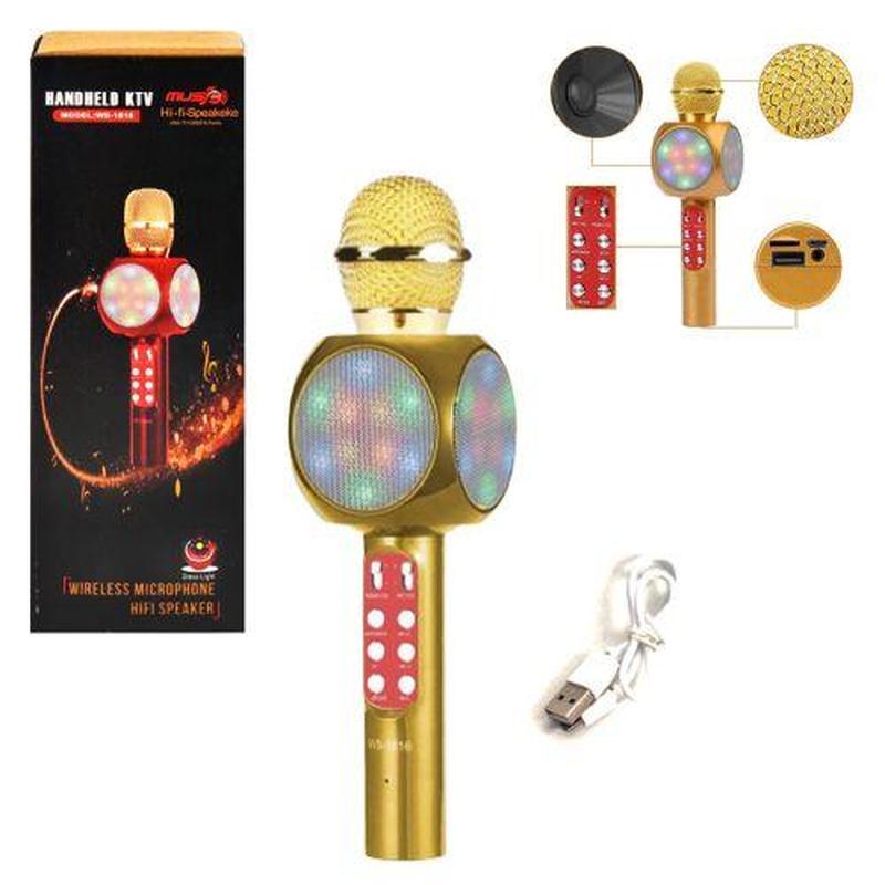 Уценка. беспроводной микрофон-караоке, с подсветкой (золотистый) - повреждена упаковка\не...