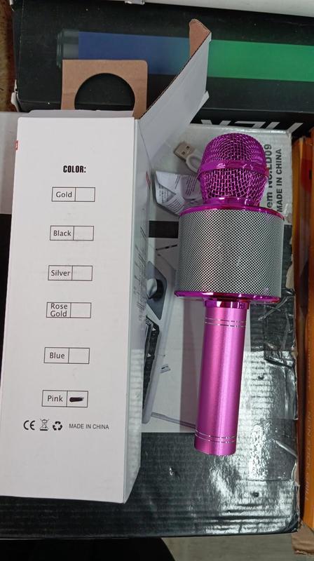 Беспроводной микрофон Wster WS-858 микрофон для караоке с Bluetooth Особенности: Беспроводной Bluetooth микрофон и колонки, два в одном. Головка микрофона имеет три обработки уменьшения шумов, что подчеркнет ваш хороший голос. Есть режим - ЭХО. Батареи емкостью 1800mAh хватает до 6 часов непрерывного пения. Подходит для IOS и андроид смартфонов, планшетов, Bluetooth и т.д. Возможно, используется в качестве Bluetooth динамика. Есть функция записи на карту памяти microSD. Микрофон одной клавишей изменяет голоса (4 режима голосов, от "писклявого" до "грубого"). ### Характеристики: Версия Bluetooth V4.0+EDR; Расстояние подключения: 10 м; Мощность спикера: 5W (каналы 1.0); Частота: 100Hz-10kHz; Интерфейс: 3,5 мм (наушники), Micro USB, TF слот для карты, USB; Рабочее время: 5-8 часов; Режим ожидания: 360 часов; Тип аккумулятора: Литий-ионный 18650 аккумулятор 3.7V, 1800 mAh Материал: Алюминий, ABS пластик;