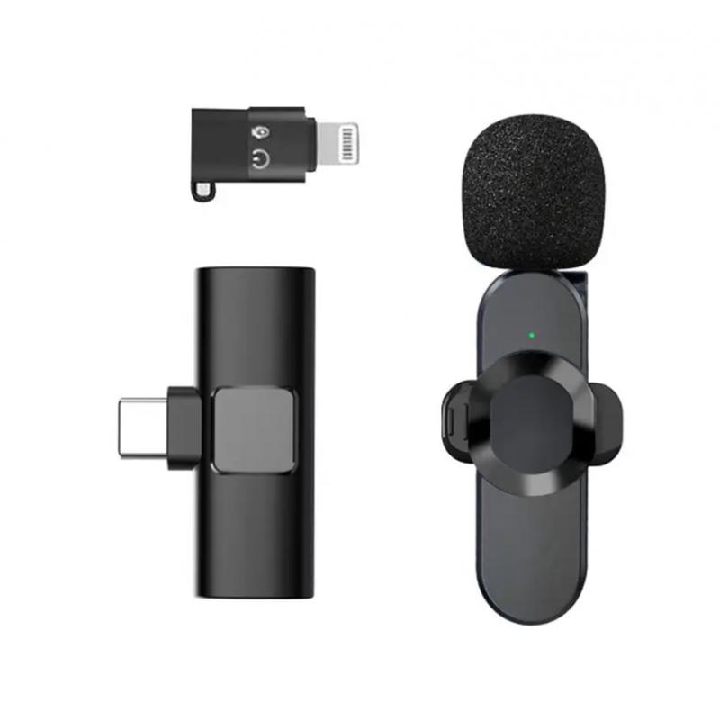 Беспроводной петличный микрофон для записи видео f5 с адаптером lightning-type-c