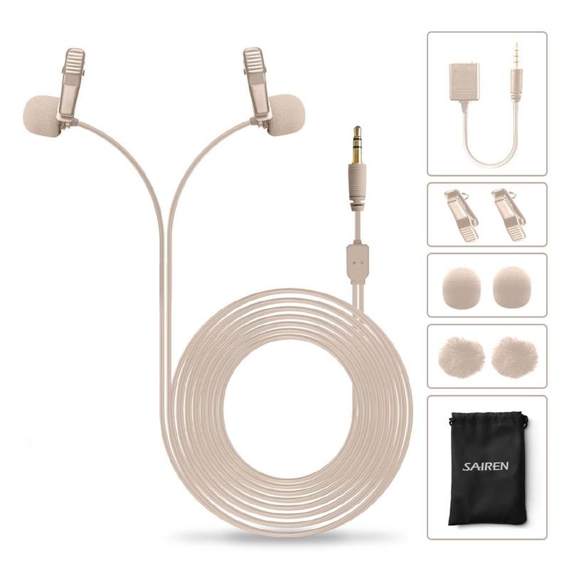 Двойной микрофон петличный для камеры, компьютера, смартфона sairen s-lav шампань (6 м каб...