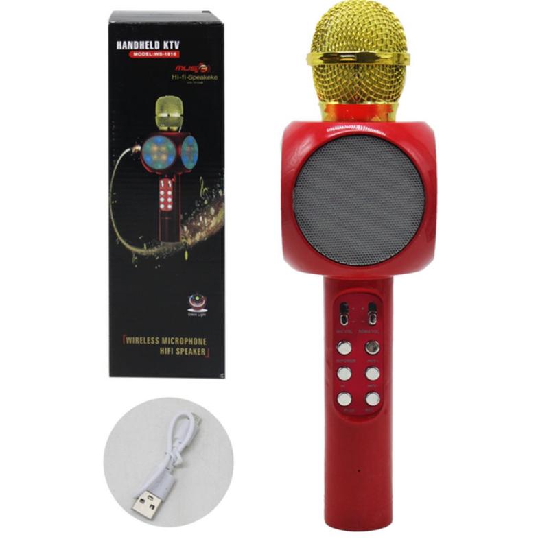 Червона мікрофон-колонка. • Чудово підійде для подарунку, для настрою, прослуховування музики і співів. Підключається по Bluetooth (блютуз)