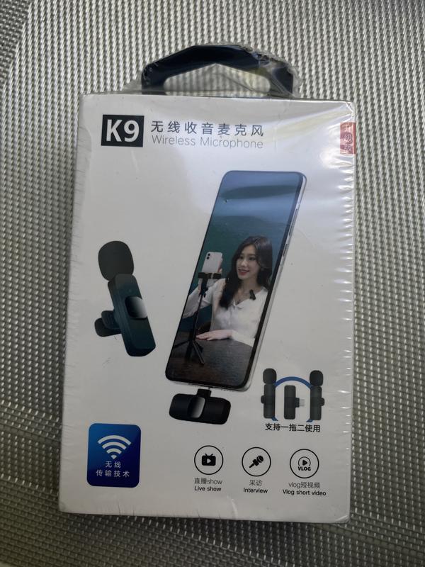 Комплектація Петличний мікрофон K9 – 2 шт.; Приймач для мікрофона (ресивер) – 1 шт.; USB Зарядний кабель – 1 шт.; Порт підключення: Lighting Характеристики мікрофону K9: Підключення: Бездротове Призначення товару: для Iphone Тип мікрофону: Конденсаторний Напрямок: Всеспрямований Дальність сигналу: до 20 м Матеріал корпусу: Пластик Колір: Чорний Розміри мікрофона: 60х15х7 мм Розміри передавача: 43х15х5 мм Мікрофон для блогерів Бездротовий мікрофон для айфону K9 Lightning Бездротовий петличний мікрофон K9 – простий та ефективний засіб для озвучування відеозапису. Професійний мікрофон петлочки – запише ваш голос без дроту, кабелю та стійки. Універсальний бездротовий мікрофон для iPhone – чудовий подарунок для блогерів, для зйомки блогів та відео на вулиці, у галасливому приміщенні, для презентацій та конференцій. Компактний бездротовий мікрофон радує високою якістю аудіо. Маленький мікрофон поглинає шуми, підійде для запису професійних відео. Завдяки компактності та тому, що немає проводів, він не обмежує руху. Петличний мікрофон не потребує встановлення додаткових драйверів. Щоб розпочати запис, необхідно вставити в Lighting роз'єм айфона бездротовий адаптер (ресивер), який забезпечить радіозв'язок із петлевим мікрофоном. Мікрофон K9 зручно чіпляти на одяг.